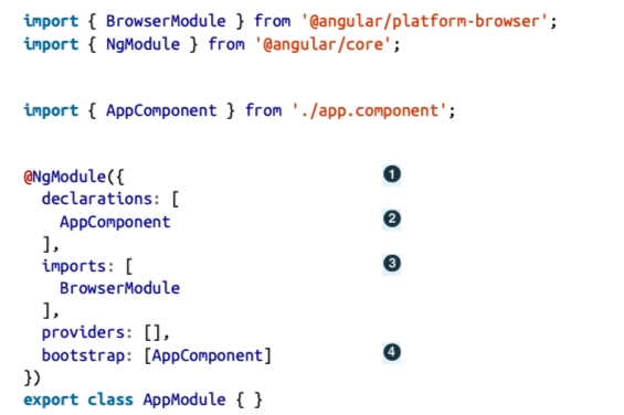 bootstrapThe bootstrap array defines the component that acts as the entry point to your application. If the main component is not added here, your application will not kick-start, as Angular will not know what elements to look for in your index.html.