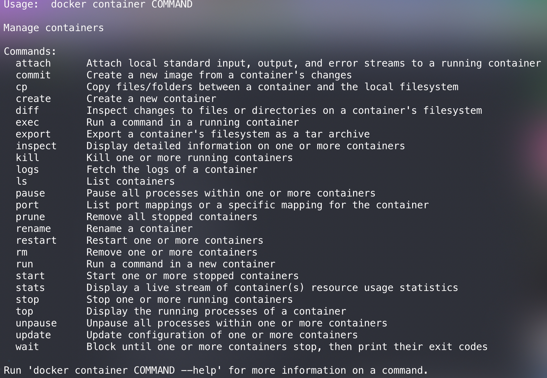 docker container COMMAND