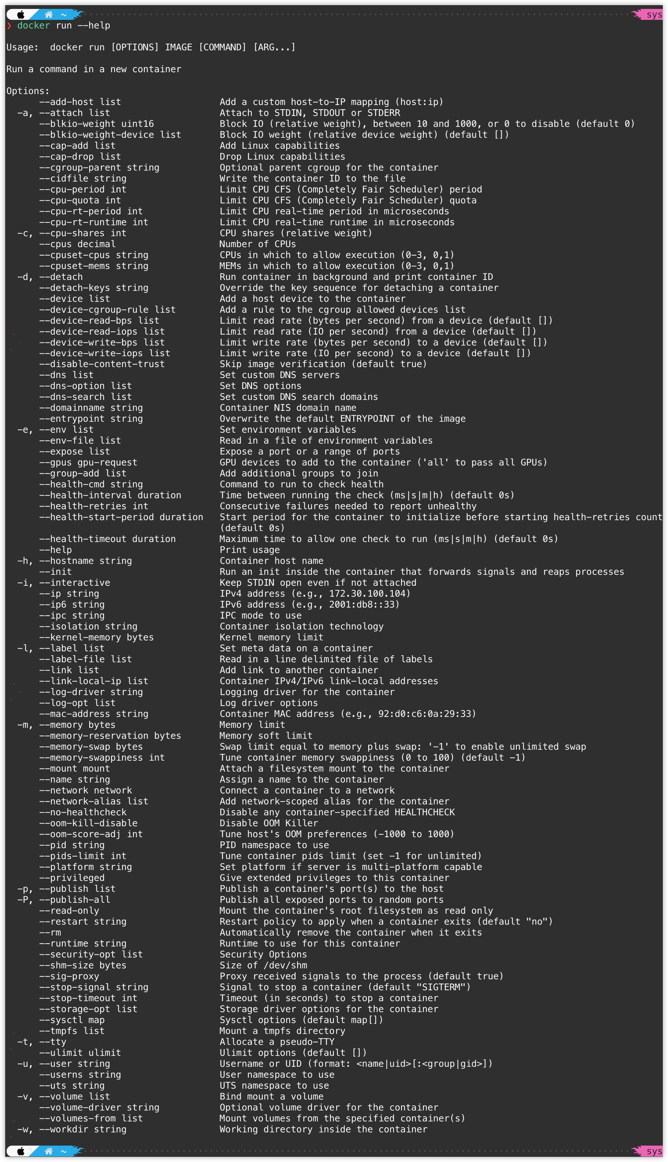 docker run COMMAND