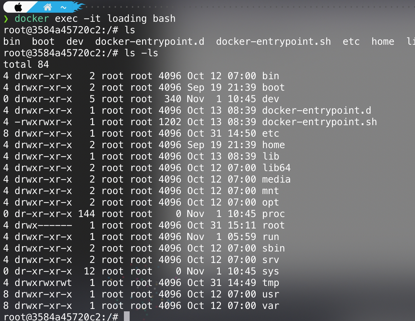 docker exec -it containername bash(/bin/sh)